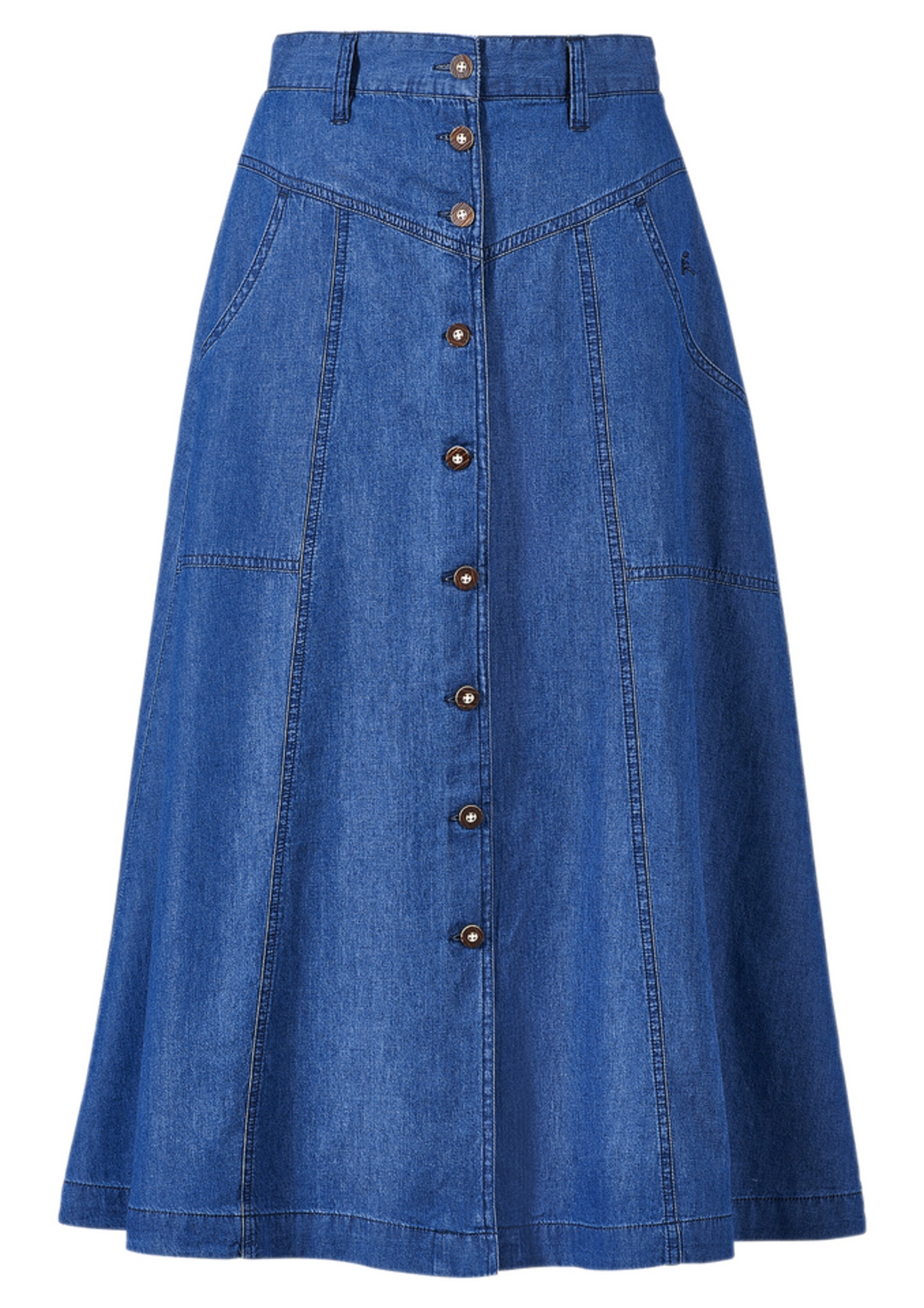 Trachtenröcke unterschieden sich in der Gestaltung ihrer Bünde. Ein hochgeschnittener, miederartiger Bund ist häufig bei einem Dirndl-Rock zu finden. Während der Rock auf der Rückseite verschlossen wird, dient die Vorderseite als Blickfang. Schnallen, Schleifen oder aufwendige Dekors sorgen für optische Reize. Ein Dirndlrock für Damen mit niedrig geschnittenem Bund verleiht Deinem Outfit eine sportliche Note. Er passt prima zu engen Blusen, Tops oder zum klassischen T-Shirt.